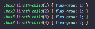 flex-grow:1; 1:1:1:1 비율로 동일하게 컨테이너를 채움